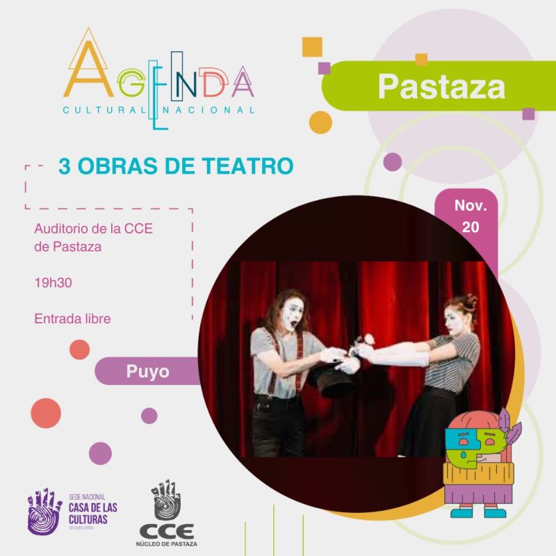 La CCE Núcleo de Pastaza invita a la presentación de 3 obras de teatro: