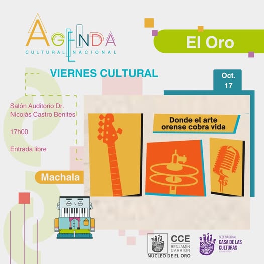 ¡Viernes Cultural!Un espacio donde el arte orense cobra vida con música, talento y expresión local. Viernes 17 de octubre – 17h00 Salón Auditorio Dr.