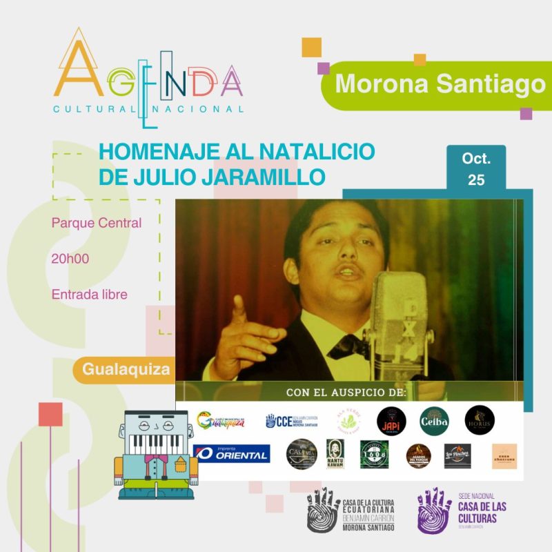 Homenaje al natalicio de Julio Jaramillo, recordando nuestra música ecuatoriana junto a artistas independientes de Gualaquiza. Fecha: sábado 25 de octubre de 2025 Hora: 20h00 Lugar: Parque