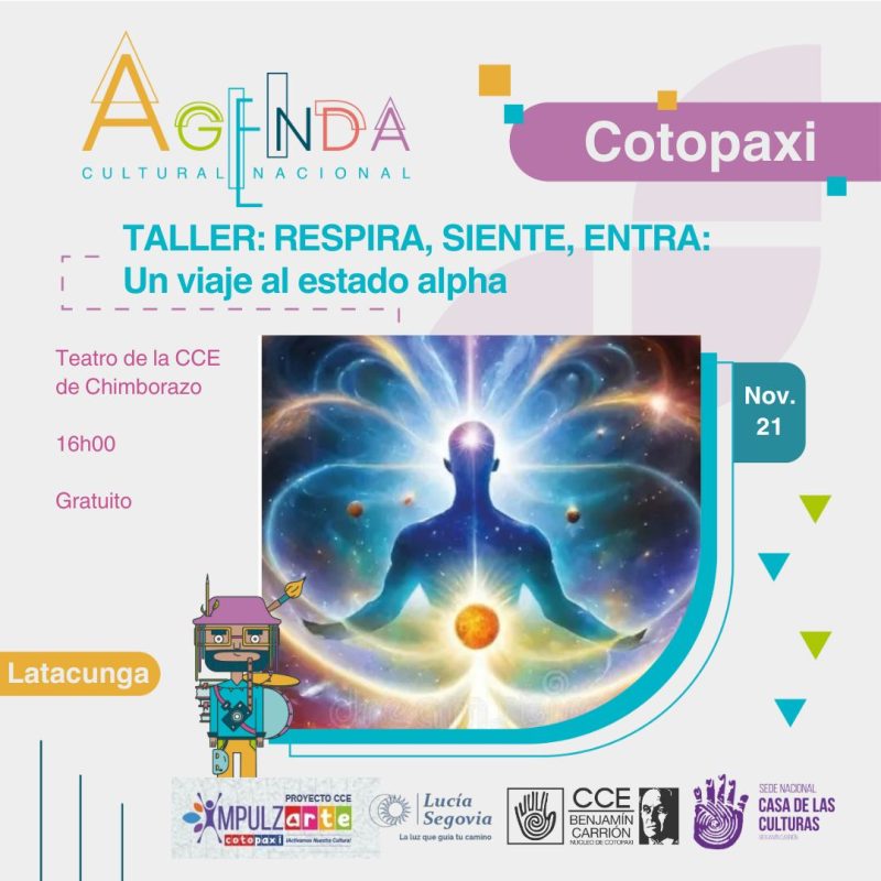 La Casa de la Cultura Ecuatoriana «Benjamín Carrión» Núcleo de Cotopaxi y Lucía Segovia invitan al 𝗧𝗮𝗹𝗹𝗲𝗿 𝗴𝗿𝗮𝘁𝘂𝗶𝘁𝗼 “𝗥𝗘𝗦𝗣𝗜𝗥𝗔, 𝗦𝗜𝗘𝗡𝗧𝗘, 𝗘𝗡𝗧𝗥𝗔: Un viaje al estado alpha” Una