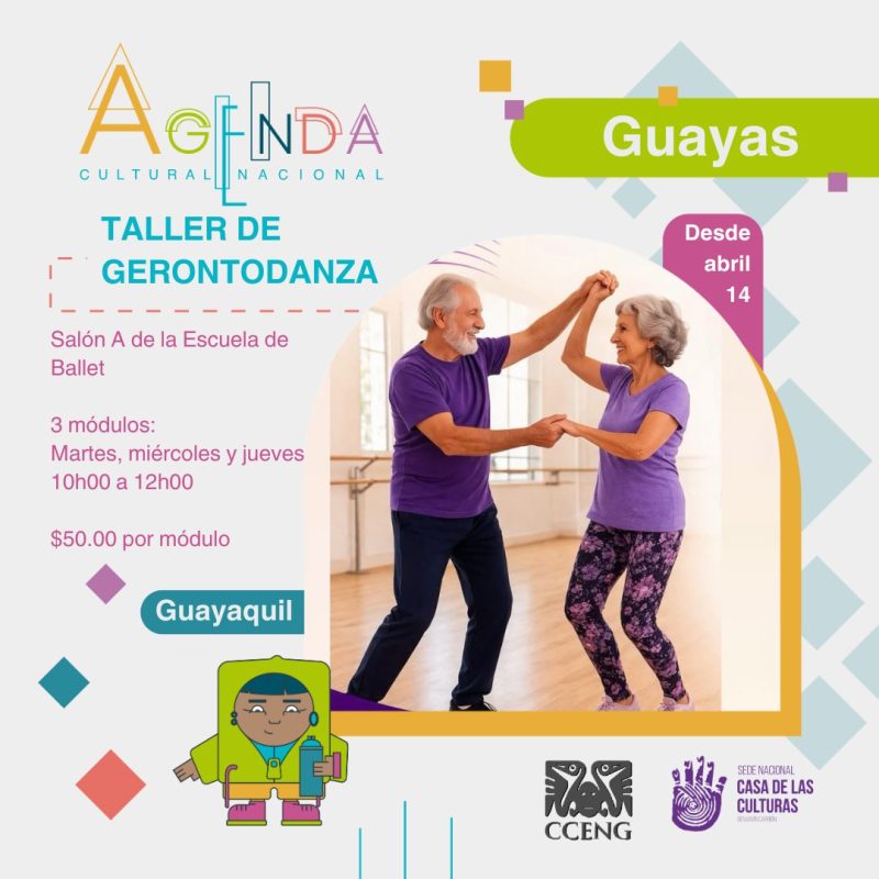 #AGENDAGUAYAS 💃🧓✨ TALLER “GERONTODANZA” Descubre el poder del movimiento como herramienta de bienestar, expresión y conexión. La Casa de la Cultura Ecuatoriana – Núcleo del