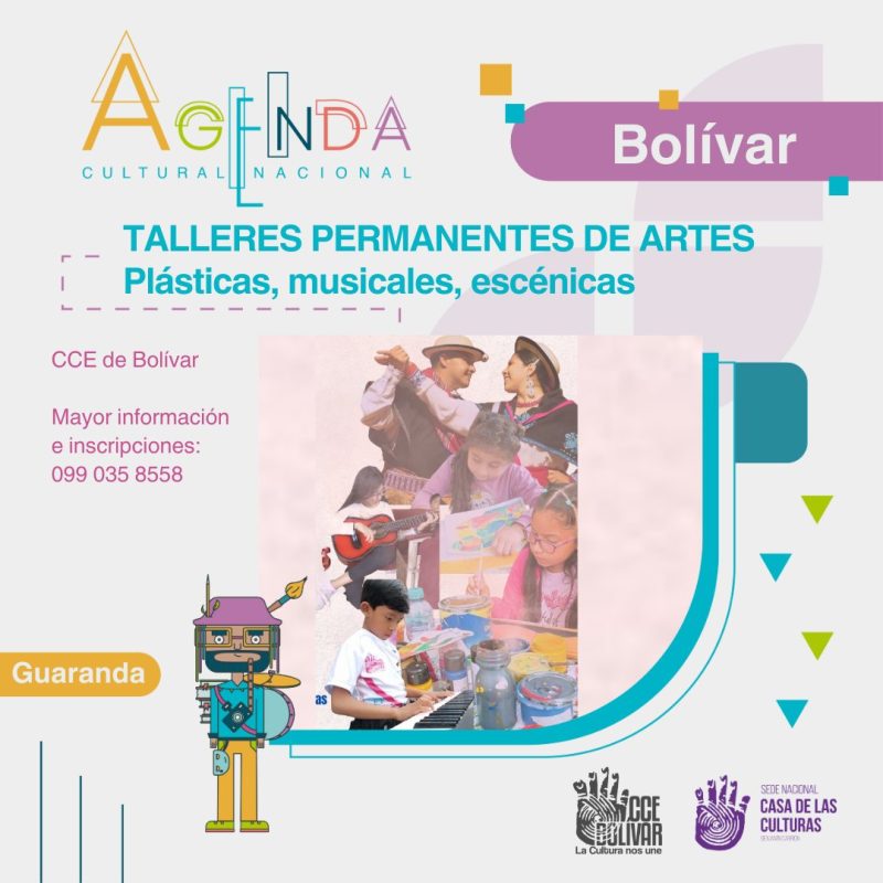 TALLERES EN BOLÍVAR La Casa de la Cultura Núcleo de Bolívar invitan a inscribirse a los talleres permanentes de artes plásticas, musicales y escénicas Lugar: CCE de