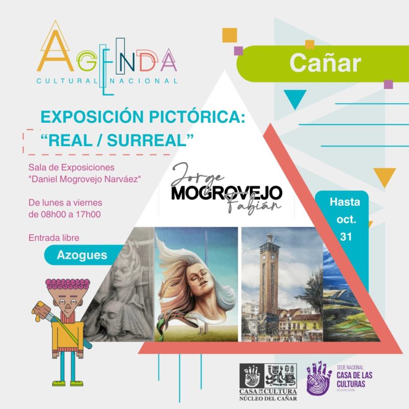 EXPOSICIÓN DE JORGE MOGROVEJO La Casa de la Cultura del Cañar realiza una cordial invitación a disfrutar de la 𝒆𝒙𝒑𝒐𝒔𝒊𝒄𝒊𝒐́𝒏 𝒑𝒊𝒄𝒕𝒐́𝒓𝒊𝒄𝒂 «𝑹𝒆𝒂𝒍 | 𝑺𝒖𝒓𝒓𝒆𝒂𝒍» de Jorge Mogrovejo